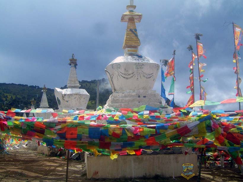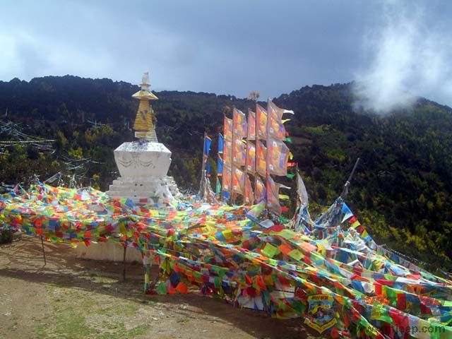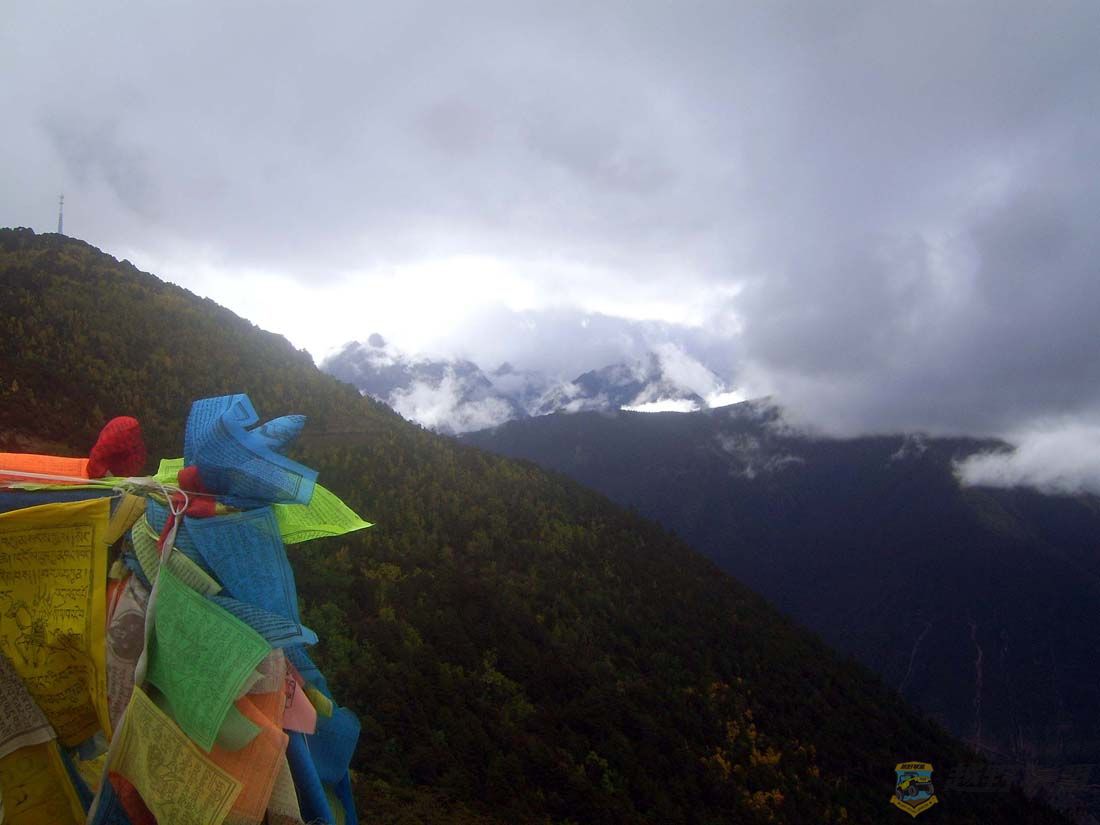回到飞来寺后,整个下午要么细雨霏霏,要么云雾缭绕,卡瓦格博始终不露真容。每每看到一阵风过,山谷的云似乎散了一些,我的心就开始提起来。特别是有几分钟,天空中的乌云居然露出一个空洞,一股阳光直射在观景台的白塔和经幡上,我满心欢喜,以为老天终于要放晴了,卡瓦格博就要现身了。可没过一会儿,太阳又被浓云遮得严严实实了。一整个下午,我就是在反反复复地希望、失望、再希望、再失望中度过的。最后,心有不甘,决定在飞来寺再住一晚,也许明天早上雨停云散、日照金山呢。