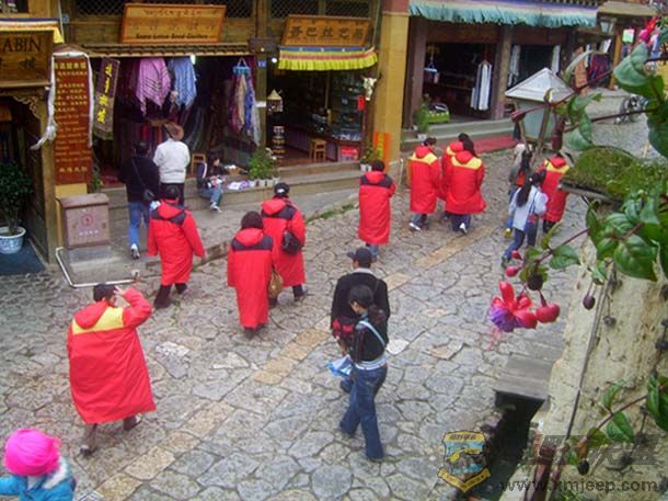 十月十六日,在浓浓的雨雾中翻越白马雪山回中甸。在上山时,又到看那辆湘A的越野车了,它超越我坐的班车拂云而去。当时我真的很有点失望,看来是蹭不上这车,无缘结识那两位女侠了。过了垭口下山后,我们车停下来加水,我正在路边拍照,山路上远远驶来一个熟悉的车影,哈哈,这不正是那湘A车吗?怎么又跑到我后面去了?没有丝毫犹豫,当即站在路边拦车。车窗缓缓滑下,两位红衣女侠果然是侠肝义胆,她们也还记得昨天雨中独立明永冰川景区门口的我,爽快地答应我蹭车的请求。于是,我挥别那两对刚认识的驴友,从班车的加座上转移到越野车宽敞舒适的后座上,奄嘛呢叭咪哞。