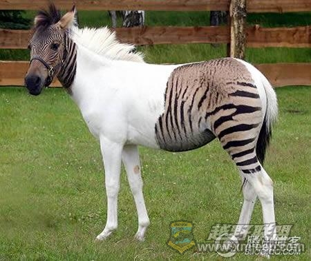 15、图片中的这只杂交斑马(斑马与其它任何一种马科动物杂交的产物)名叫“爱克莉斯”(Eclyse),由于独特的肤色,成为杂交斑马家族中一个非常另类的成员。面对这样一张令人惊异的图片,我们很容易产生这样一种怀疑——图片一定经过Photoshop处理。