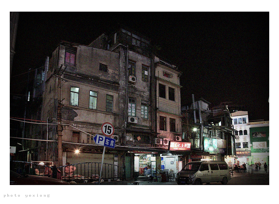 " j# T0 R3 Y4 r; n) N B/ M) R, A7 P也许有些人会问,为什么都选择晚上去拍,因为夜晚的光线会把很多杂乱无序的东西,比如各种乱拉的电线什么的都隐藏在暗影里,更能表达我想要的效果,画面和白天拍的相比会更简洁更有视觉冲击力。