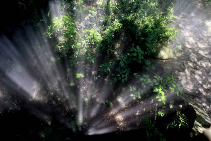 热带植物区水雾弥漫,斑驳的阳光照射下如同仙境