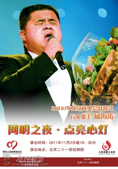% S3 V4 S# c& {' L. @3 N* w8 S! p 总有一种力量让人泪流满面,总有一种情感让人无法割舍。这个纯粹由盲人组成的艺术团除参加各种公益演出外,还将进入文化市场,通过商业演出收入以保障自己的生存和发展,并持续不断地为无奈、无助、无望的盲人免费培训就业及盲人呼叫中心募集善款;来培养更多的年轻盲人,让他们能独立自强,学一技之长,改变生活,改变生命。他们就是要用自己的艺术和心灵告诉世界:“我们不只是索取关爱、收容怜悯;我们也要奉献爱心、回馈社会,以我们的艺术事业积累更多的资金,来帮助更多需要帮助的残疾人兄弟姐妹!”