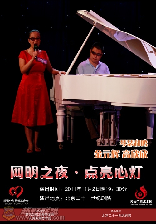 四年来,他们筚路蓝缕,以纯粹的心做慈善,不自夸,不张扬,不求自己的益处,不计算自己的得失。先后在中国14个省市为880名视障人士提供免费按摩培训,安置就业;为拓宽盲人就业渠道,成立中国大陆第一家盲人呼叫热线——“光明天使呼叫中心”,安排盲人呼叫热线培训、上岗就业;与台湾爱心企业家王雪红合作,在贵州惠水成立光明天使盲人医学院;更为惊喜的是,在杨福梅女士和爱心人士的共同资助下,今年3月成立“天使荣耀艺术团”。0 F7 f- J* N' k& x