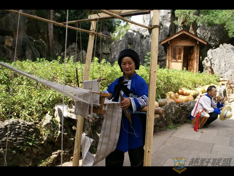 在石林景区表演纺织秀的老人
