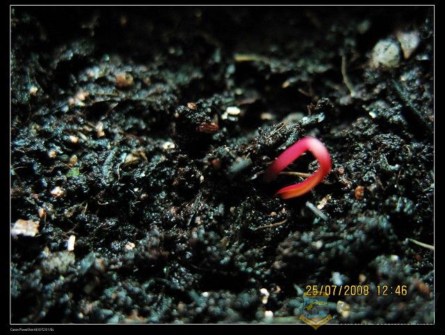 ) u' \ j. `3 H* z; y6 z I, O7 m5 s厦门越野联盟今天睡到日上三竿,起来发现土里有异样红红的东西.凑近看,哇!发芽啦!0 S' x- o& s" v