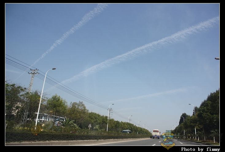 今天的天格外晴朗,也感谢那小飞机留下了它飞翔的痕迹.# _* L4 Z3 c' I5 D" U, i( ]