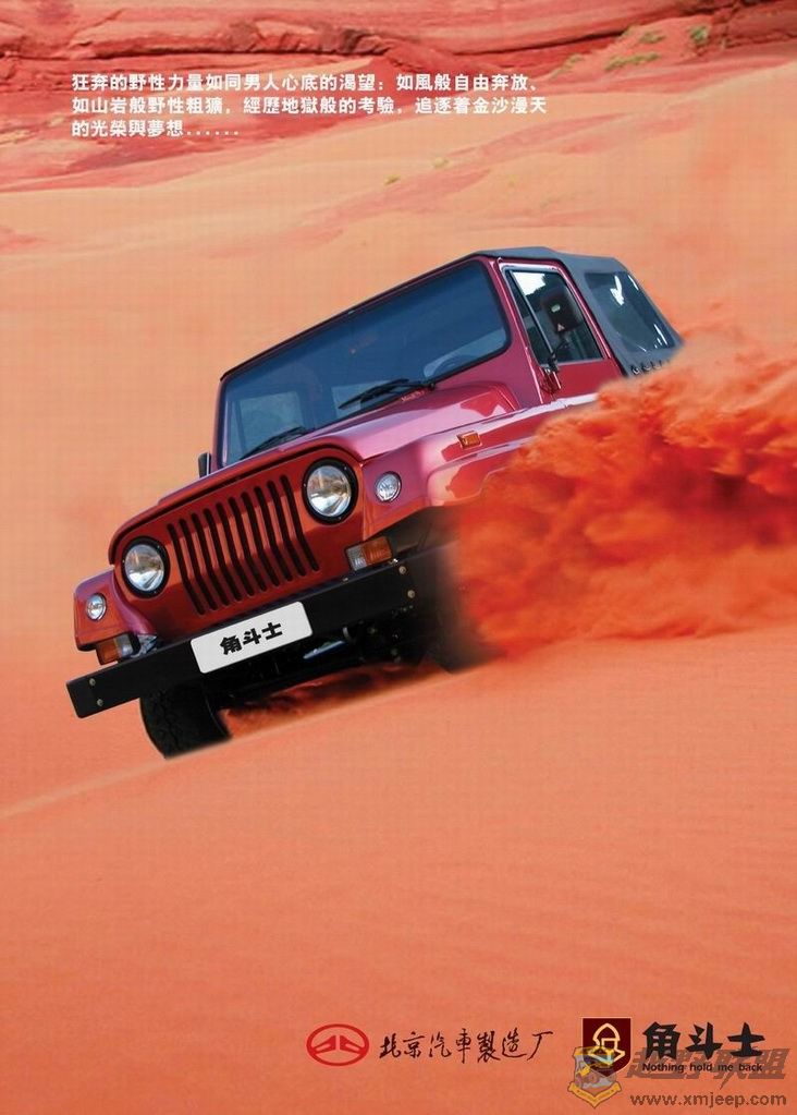 角斗士是北京汽车制造厂最新打造的小型双门四驱越野车,车身造型、尺寸与Jeep牧马人相似,装备2.2L4Y发动机与日本爱信公司生产的手动变速箱,角斗士主攻现代都市追求运动与张扬的年轻消费者.