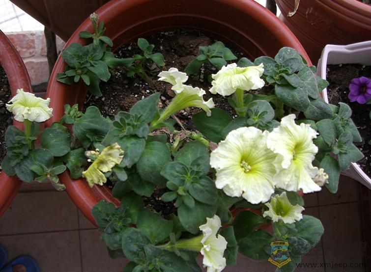 它担负着空调外机,晾衣,还有种花的功能,活生生的被俺挤爆了,目前草花暂时安置在这里,