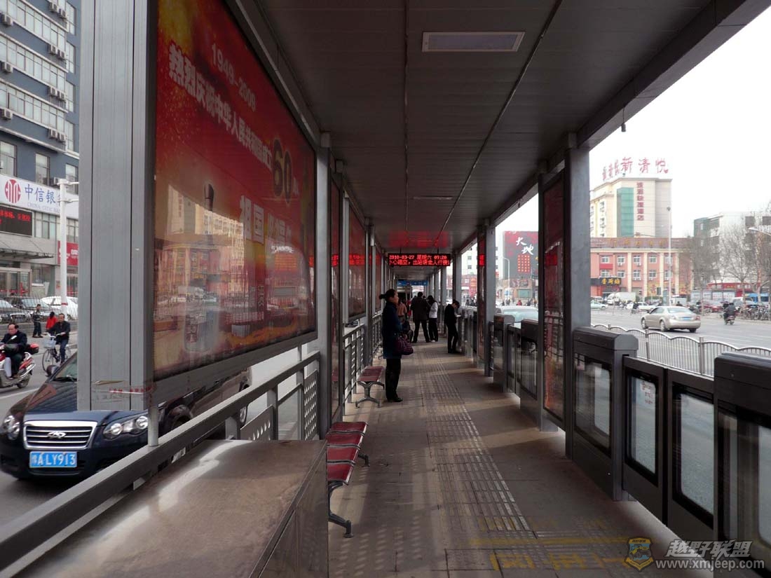 5 l7 W; m6 u( ~& [4 i1 y" N十一点半到达郑州,沙尘暴已经过去,天空一片湛蓝。128元就在市中心的二七广场边上搞定住宿,坐在房间内可以听到二七纪念塔播放的《东方红》。吃完面条在街上边逛边考虑要去哪里游玩,驶过身边的一辆520路公交车让我心中豁然开朗。520路公交车,终点站花园口黄河游览区,下午半天时间就去花园口看黄河!黄河也是此次中原行的看点之一,之前我还困惑,一个人如何坐车去看黄河呢?不想一辆公交车就解决了这个大难题,这也是驴行之乐趣也!
