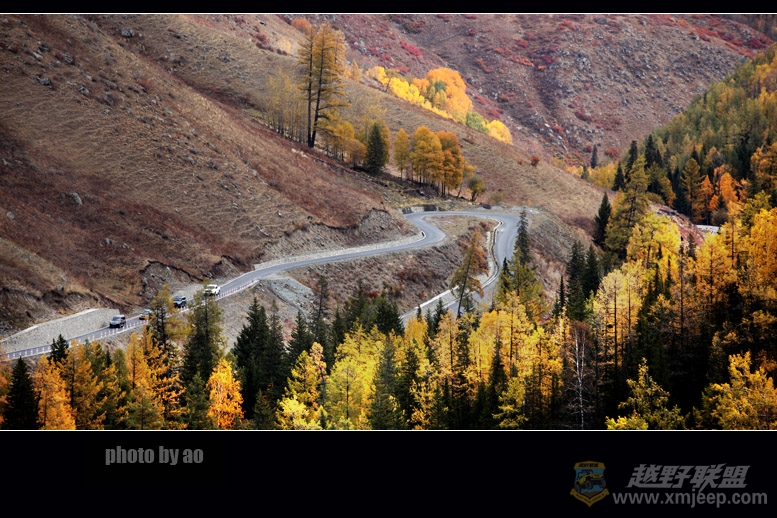p0 b. R* n- e3 M+ Uwww.xmjeep.com新四人组从布尔津出发前去禾木,途中看到五彩滩的指路牌,转进去走了一截,发现路越来越难走,便在路边拍张芦苇荡走人。