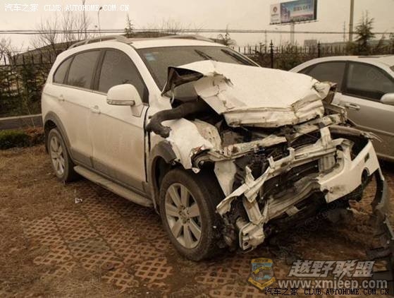 车就是依靠这根仪表台前的大梁保护车身,科帕奇的车身结构还是很安全的,看这张图片,这辆科帕奇前方受到了严重的撞击,整个发动机仓都完蛋了,但是A柱与驾驶仓都是完好的。