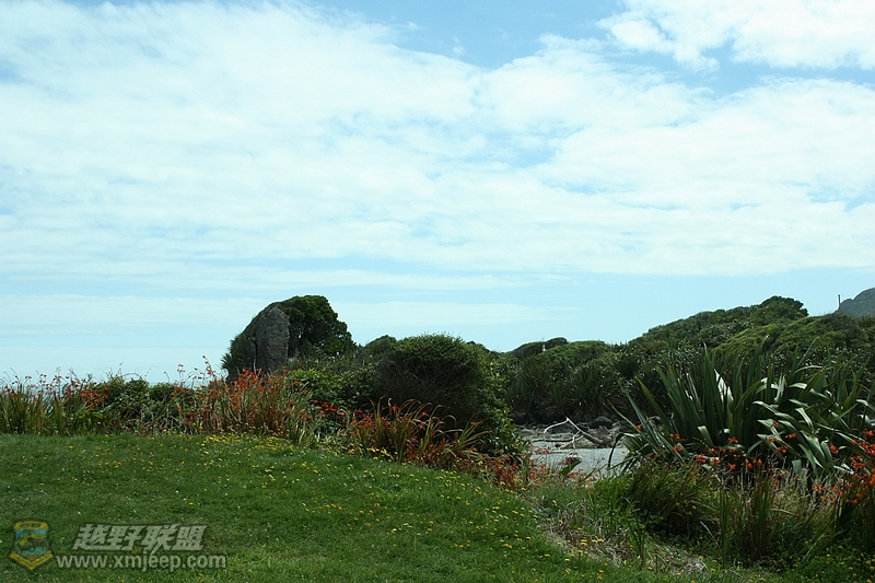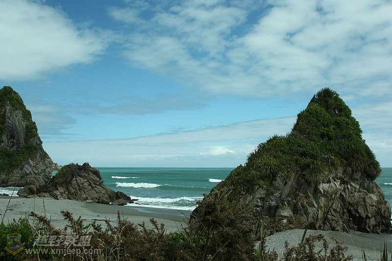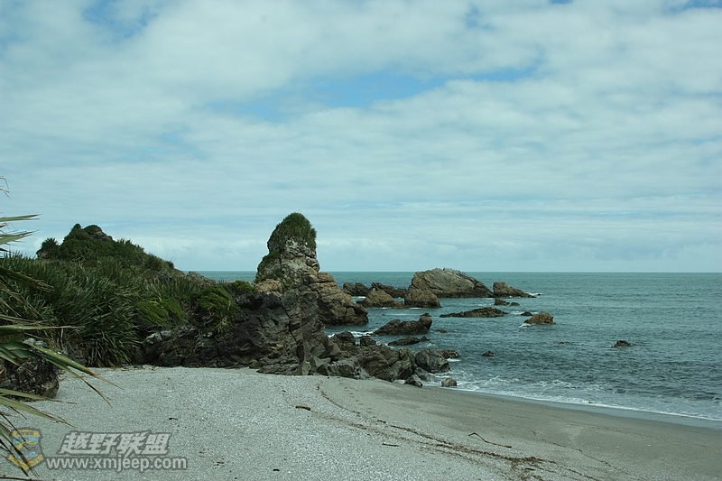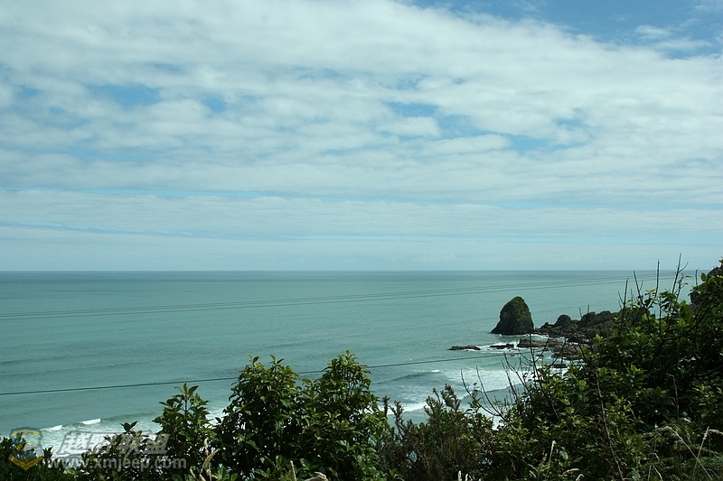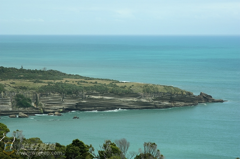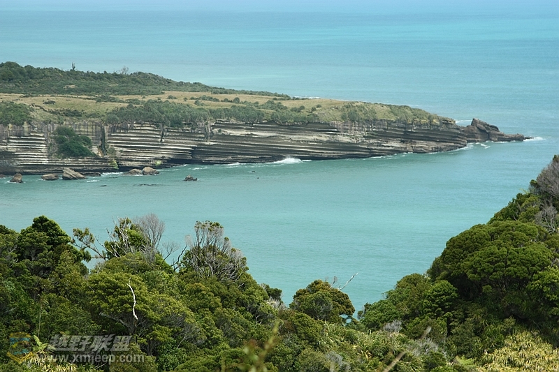 远远看见一大陆像鲸鱼一样潜入海里。裸露出的岩石就有了薄饼岩的样式,我们知道,我们快到今天的第一个景点Pancake Rock了。