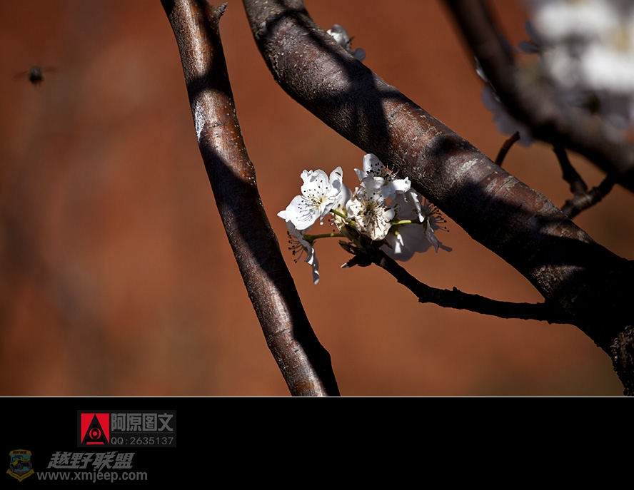在桃林路口偷拍一张后回头,其实山路上到处都是桃李芬芳,路边一棵梨树白花满枝,没有一点枯枝败叶,小蜜飞来飞去地忙碌着,花儿在轻风中微摆,让人怜爱。