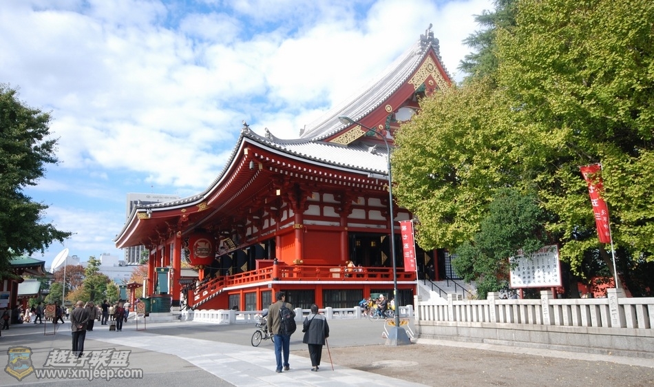浅草寺位于东京台东区,是日本现存的具有“江户风格”的民众游乐之地。相传,在推古天皇三十六年 (公元628年),有两个渔民在宫户川捕鱼,捞起了一座高5.5厘米的金观音像,附近人家就集资修建了一座庙宇供奉这尊佛像,这就是浅草寺。其后该寺屡遭豳火之灾,数次被毁。到江户初期,德川家康重建浅草寺,使它变成一座大寺院,并成为附近江户市民的游乐之地。寺院的大门叫“雷门”,门内有长约140米的铺石参拜神道通向供着观音像的正殿。寺西南角有一座五重塔,仅次于京都东寺的五重塔,为日本第二高塔。寺东北有浅草神社,造型典雅,雕刻优美。