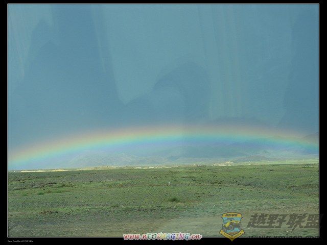 更幸运的是,告别乌尔禾魔鬼城继续向喀那斯进军途中.天色突暗,暴雨倾盆.车子奔驰在一望无际的草原上,众人皆睡我独醒,因为喜欢看路边风景嘛!忽然转头发现天边那一抹久违了的彩虹哈!厦门越野联盟+ f: L$ |, ~- u* O; u$ E: m