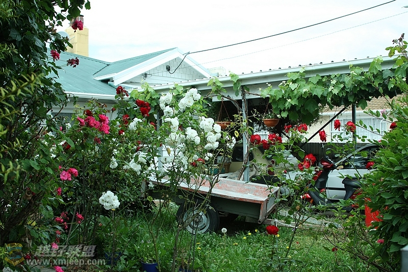 木栅栏里是这户人家的前院,种满了各种花卉。边上的路通往大海
