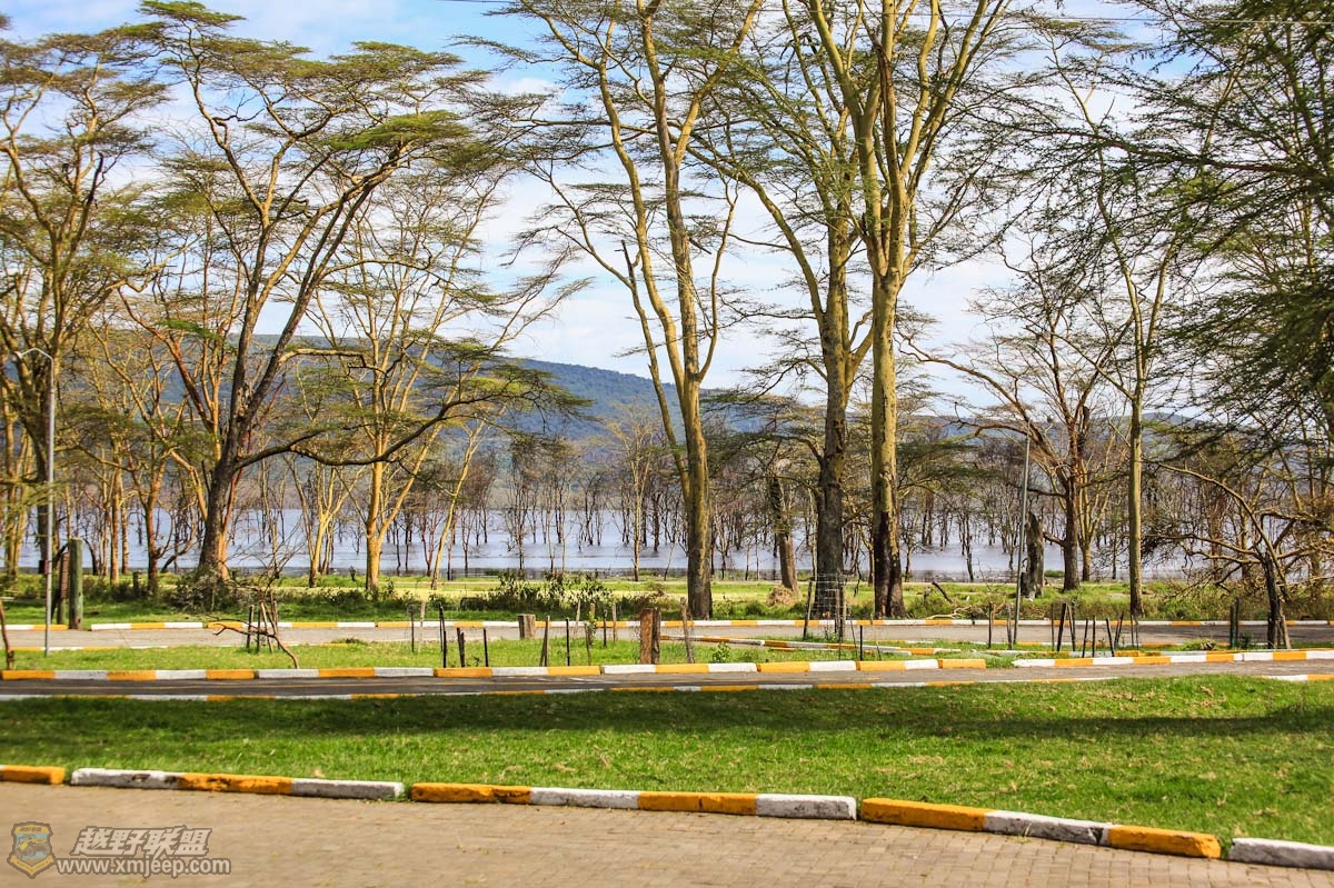 车行中——哥们一家子在蓝色湖边晒太阳。
