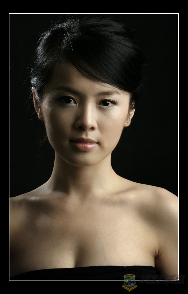 主灯用1.5X1.5M的柔光箱从右侧打光,有余光照到背景上,所以衣服和背景不是纯黑一团,暗部还有丰富的暗调层次。拍这种照片要注意眼睛里要出现眼神光,不然就缺少神采,这照片压缩了尺寸,眼神光有点看不清了呵呵。