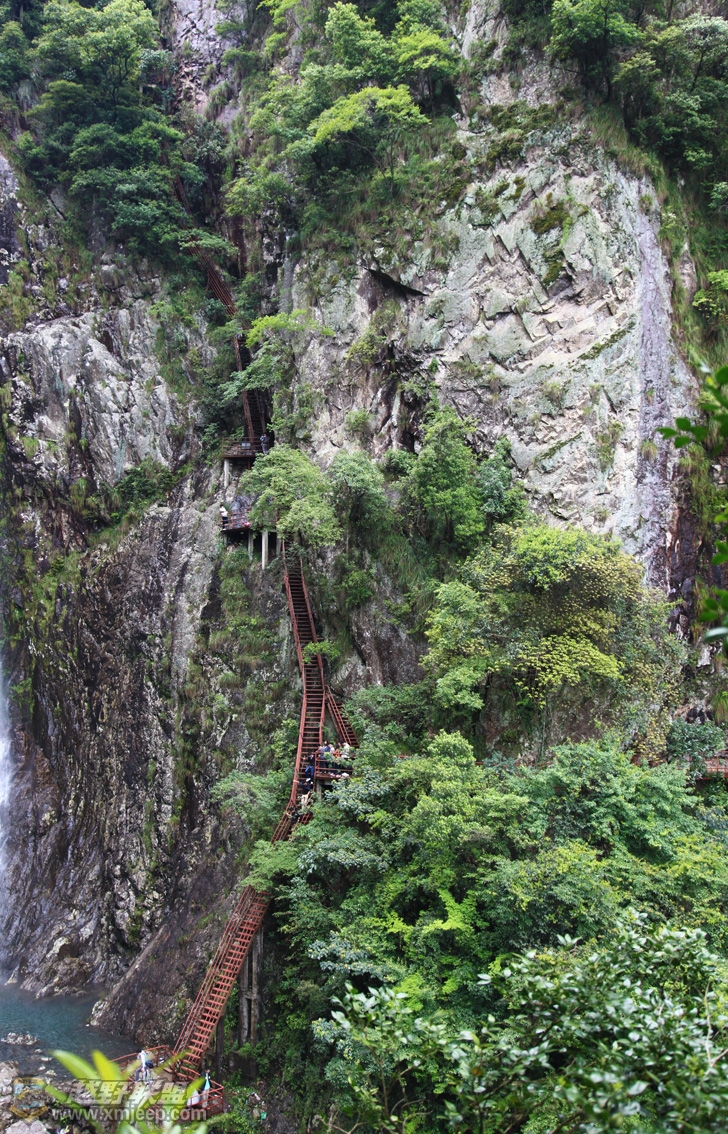 哇好壮观的瀑布,有一百多米高呢,主要是看看右边的天梯,天啊,这么陡。。。