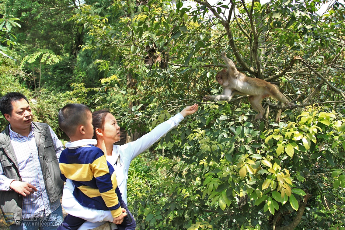 大人小孩看到野生猴子都开心坏了,