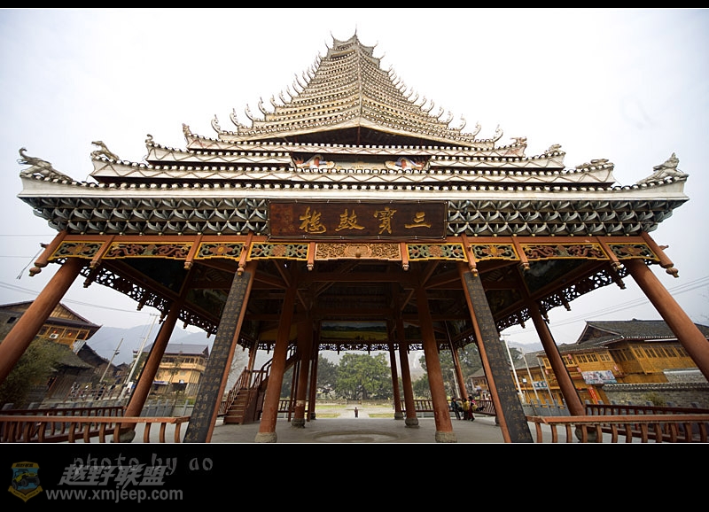 $ a* G z$ A T9 X( x# {厦门越野联盟号称“世界第一鼓楼”的三江鼓楼,它是面积最大高度最高的鼓楼,三江鼓楼共有27层瓦檐,整个鼓楼未用一根铁钉,支撑鼓楼的四根主柱树龄都有100年以上,其中一根树龄达208年,单根购置费用8万。虽然三江鼓楼仅在2002年因50周年县庆而建的,但建造者却是当地有名的杨家匠,其祖父辈曾是世界名桥程阳风雨桥的建造者。(门票10元)
