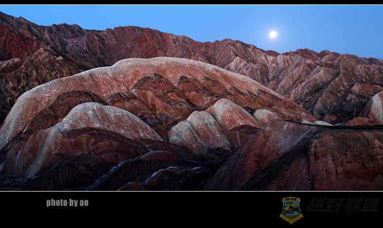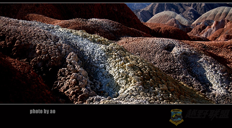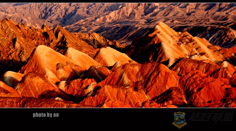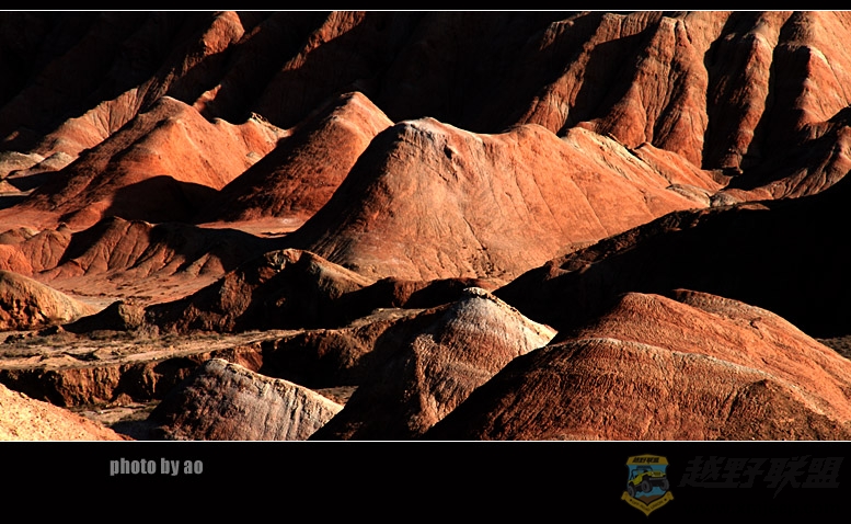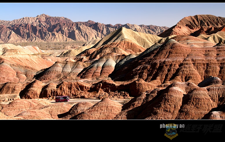 听了我对丹霞的描述,大家伙都忍不住了,一大早,安徽胖子和江苏瘦子见车开了冻,急忙召呼大家上路。由于气温有所回升,我们比原计划提前了一个小时动身,9点半,车出张掖,向肃南方向进发,过甘浚镇,很快到了南台村丹霞景区,这里离张掖30公里,离临泽18公里,由于景区路况,我们只开了8米车进入景区,景区员工导游小蒋等三位女孩也陪同我们上了一号和四号观景台,并联系了肃南的3号景区,免费让我们进去拍车。