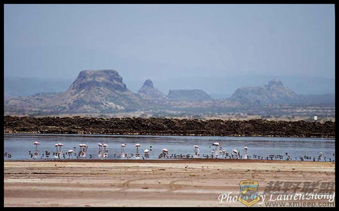 ; Y1 c" b- K: |7 P3 A途中看见盐碱滩上的火山石还有聚集的上千隻求偶的火鶴....