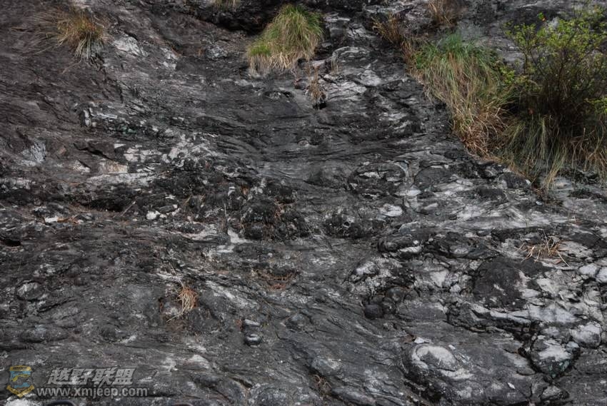 这里山体属火山岩,依稀可见火山岩体还冒着气泡