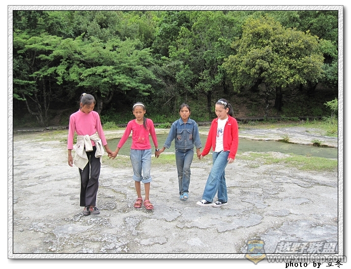 合影完,那几个一路跟着我们上山的纳西小妹妹很可怜地对我们说,希望大家能看看她们表演舞蹈和唱歌。她们利用暑假来打工赚点学费的。