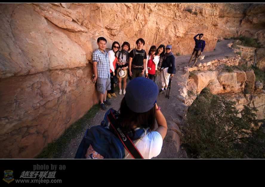 0 d6 n, Y- }# Q, A9 Kwww.xmjeep.com徒步结束,在导游的协调下,峡谷顶端的一家摄影绘画艺术沙龙对我们免费开放,穿过峡谷铁路,我们来到这家沙龙,这是一个紧贴绝壁的三层木板楼房,从房中的落地大窗及窗前2米长的单筒永远镜可观望峡谷的远近及细部,这里风景绝佳,主人、主人的爹及主人爹的爹守候在这里记录了大峡谷的历史变迁。在我看来,这倒有点像云南元谋土林浪巴铺阿黑的摄影之家,也许若干年后,阿黑的孙子也会像他们一样办起摄影艺术沙龙,也会像他们一样架起单筒望远镜在落地窗前观赏土林战士林立的壮观景象。