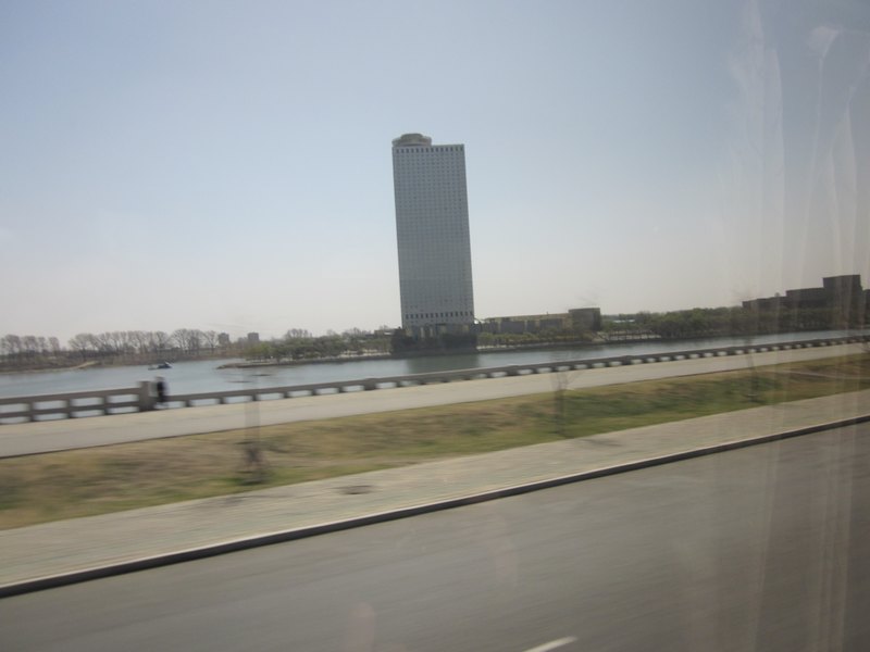 我们住到酒店,47层,平壤的高级酒店(车上拍的)