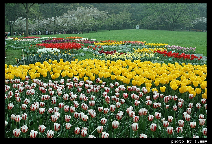 很难想象这么多人,而后面的树外就是马路了。马路对面是苏堤和西湖。
