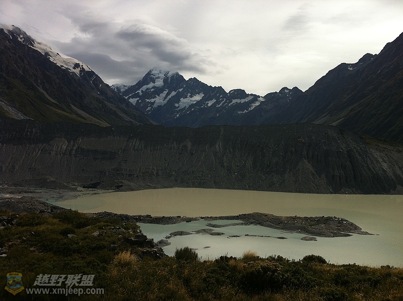 所站的位置左侧的雪山与夏季消融了的冰川。眼前的一切都是源自于它