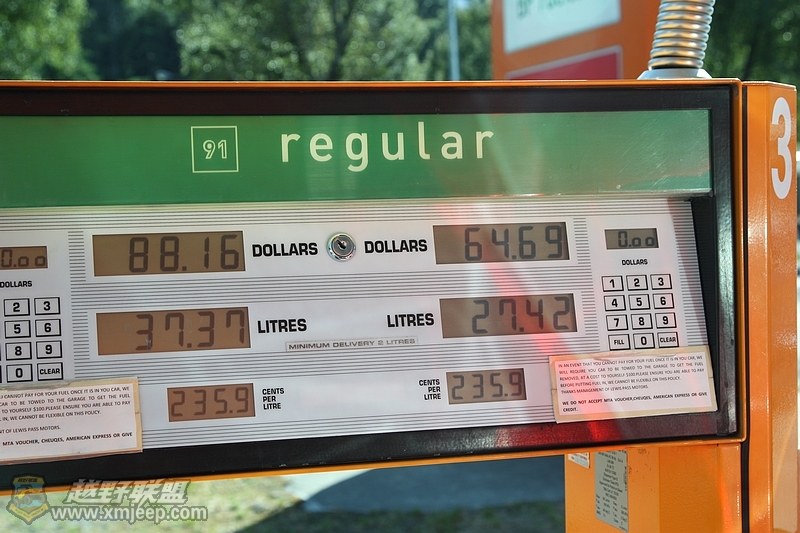( _5 p% U3 o& T1 ?' ]: g. |话说这里加油都是自助的,一切靠自己。自己拿油枪加油,再到工作台去汇报你是用了哪把油枪,多少钱,然后交钱。
