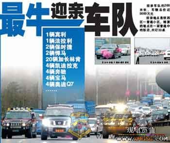 : ~9 p" O; F, L% V. x5 q -沈阳街头昨日出现一个由几十辆世界名车组成的迎亲车队 ' f ^# E. {+ f" R: z