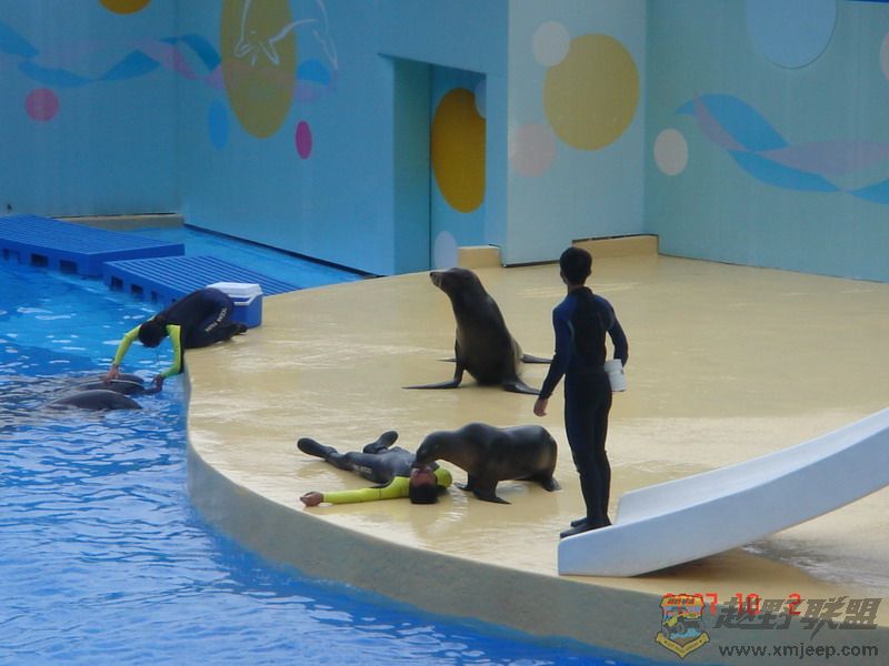 接着来上重头戏啦。。海洋剧场:海洋剧场是海洋哺乳类动物一展身手的好地方。在剧场内有3,500个座位,每天为游客提供数场精采绝伦、有趣可爱的海豚和海狮表演。不过要告诉各位,想看表演一定要在表演前提前30-60分钟进场,否则你就没座位了。。上PP了