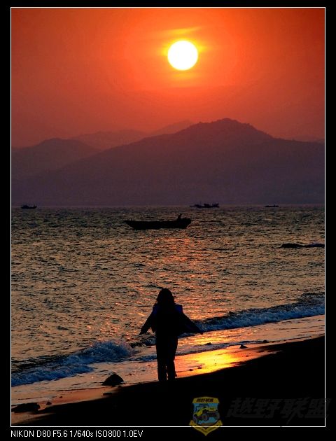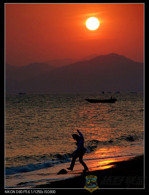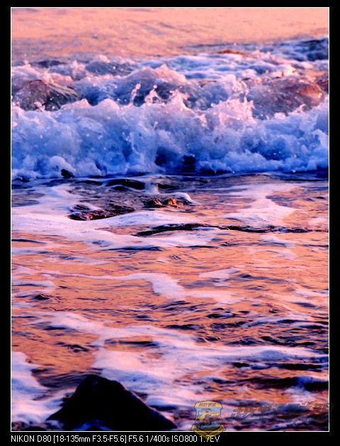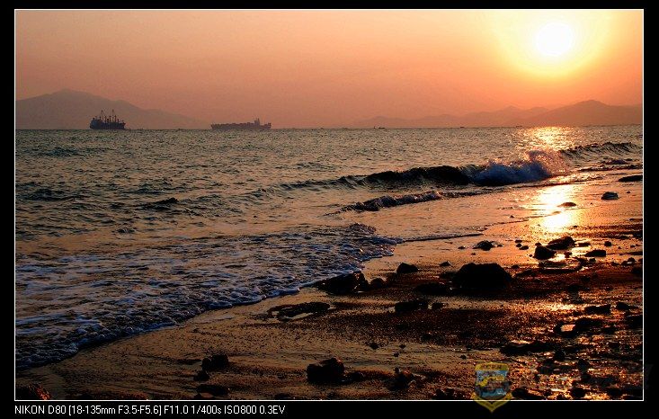 海浪追逐着沙滩,也追逐着夕阳。。。