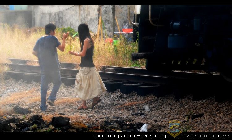 因为上回拍的《火车vs铁轨.恋曲2008》是早晨的,今天拍是傍晚的。同样的火车,不同的时间、不同的心情,是否也有不同的感觉?听奶奶说,有个画家画鸟就画了一辈子。。。就这样, 我给自己找到了下车拍照的理由。为了避免和上回照片风格相同,所以就把照片处理成LOMO风格、退色等怀旧的效果。。。