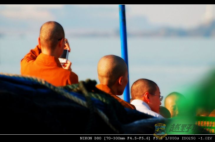 忽然岸上下来了一群僧人,从他们的言行举止看,应该是女性。头发理得很短很短,在晨光下显得很耀眼夺目。我偷偷抓拍了几张。。。