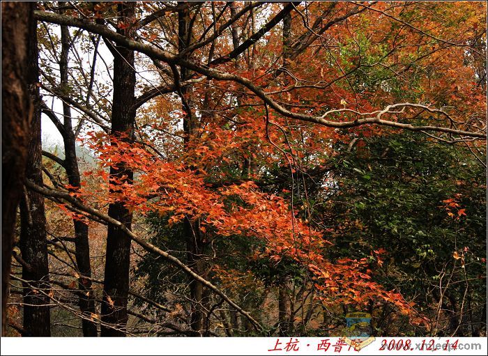 西普陀以佛法传名,枫树林却为它增添了无穷的秀色。正是红遍山谷,层林尽染,秋冬也媚人。