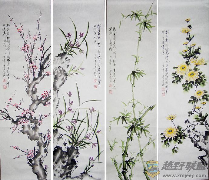 四君子-梅兰竹菊四条屏 转让几套