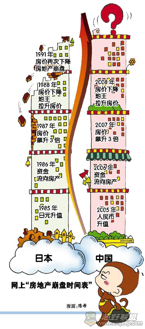 1 Z, A6 I* z) [www.xmjeep.com “现在的楼市,确实和当年的日本非常相似。树长不到天上去,这样下去早晚要出问题。”曾在亚洲开发银行任职的经济学家、现任中国发展研究基金会副秘书长汤敏不无忧虑地表示。
