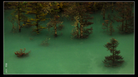 天是阴沉的,两边的山峰白雪茫茫,一路风景却是无限好。当我们的车子在经过一片峡谷的时候,我们被窗外那一片片淹没在淤泥中松林所惊呆了。那深深的峡谷被人为的遮拦建立了一个大坝,淤泥堆积淹没了峡谷中的松林。原本自然地美丽被淤泥吞没。