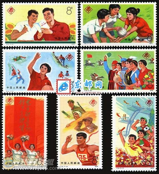 近期老票都在回调,而J6逆势上扬。在74-82J票的纪念邮票中,除了J8“四五计划”整套枚数在16枚以外,就当属J6三运会,整套7枚。新中国成立后,体育事业取得了许多新成就,“东亚病夫”的帽子被彻底甩掉,但在文化大革命中,所有这些成绩均被全盘否定。到1973年,群众体育活动和运动技术水平都逐步有所恢复和回升。在这样的背景下,1975年9月12日至28日,第三届全国运动会在北京举行。1975年9月12日在开幕当天,邮电部发行“中华人民共和国第三届运动会”纪念邮票,总发行量200万套。7 T/ U% V' j% _; l, c1 W