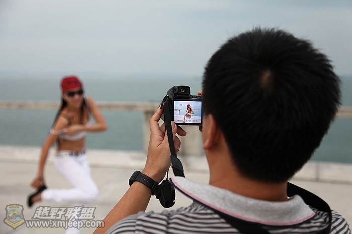 傍晚海边的光线很柔和,各位大师面对美女,不断按动快门,大展身手哈~