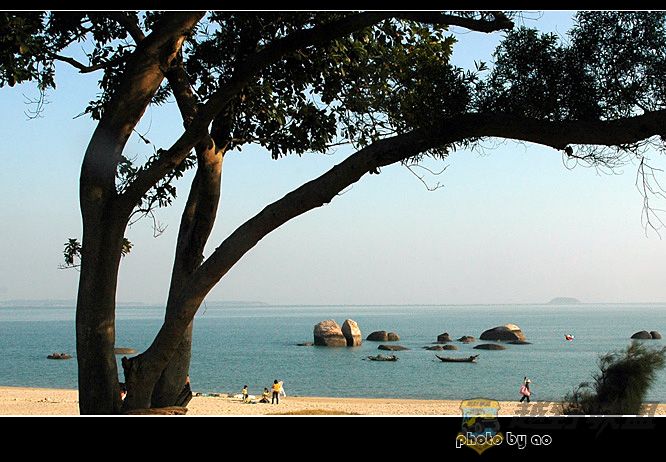7 g) c$ r, t1 y* n w8 l& U j当初建环岛路时,有好几株大榕树挡道,当地的村民都把它视为神树,因害怕筑路砍树,村民们拿着锄头守护大树,在市ZF协调下,修路时专门为树让道,虽然有的地段道路是不规整的,但没想到有大榕树的装点,环岛路显得更加迷人和美丽。