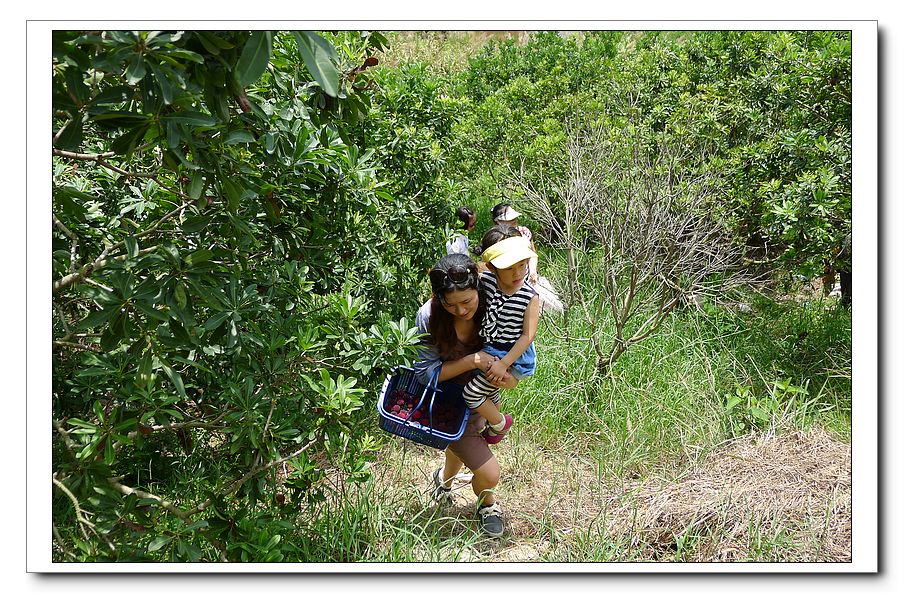 早上集合后上高速不一会儿就到出口了,这是大家排队在等候小鹅的朋友带我们去杨梅林摘杨梅。