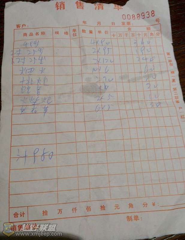 / \- D. b4 w! ~3 N买烟花爆竹共计980元