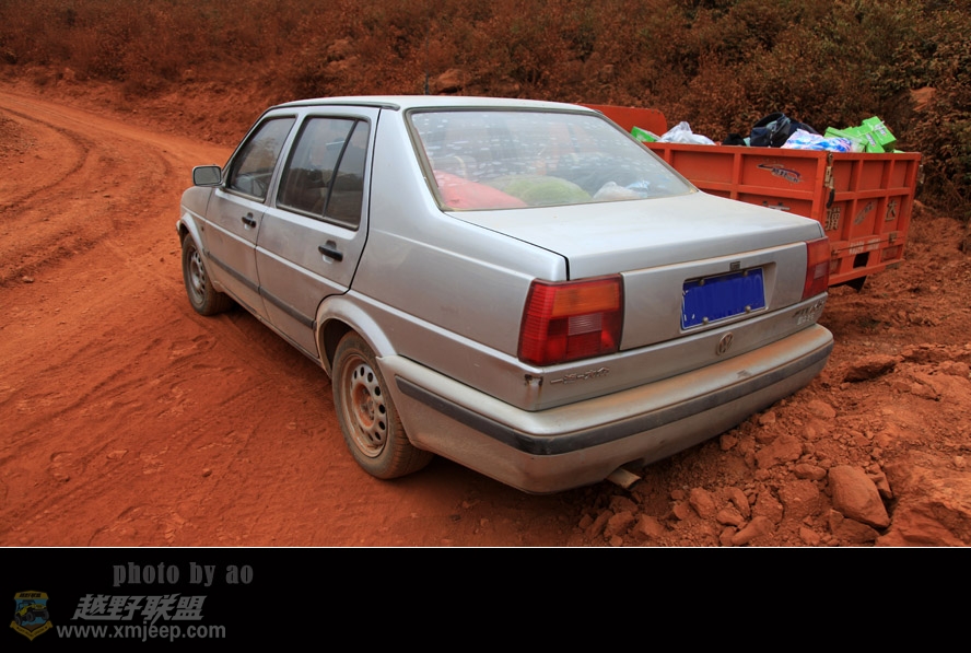 山路很不好走,半山腰上云南铜业正在建设新矿,铺路的大车坏在山路上,由于坡陡,害怕大车刹不住车出危险,我急忙后退,小车一屁股坐在土堆里,如果捷达会说话,它一定会朝我大声嚷嚷:为什么受伤的总是我?