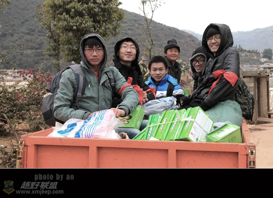 3 ?! l) y( {5 x也不知我是怎么和小攀联系上的,听他说元旦要上山支农,我一口答应了,做为唯一一个社会义工,我的小车里塞满了书包文具、棉衣鞋子等爱心物资。小樊是西南林大农村发展部的第九任会长,由于他30号要参加考试,整个行动便由发展部的杨银冬和杨锐指挥。